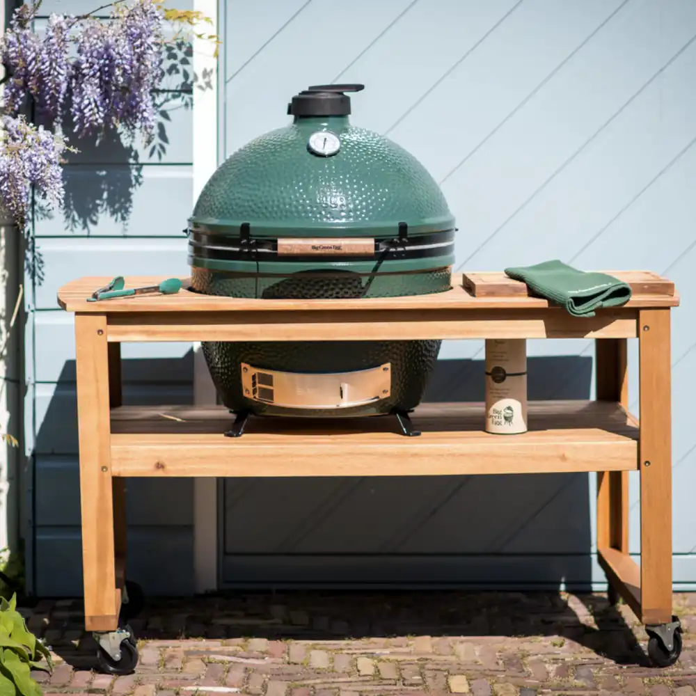 Dominantou sestavy je Big Green Egg XLarge – jeden z největších modelů v rodině EGG. Díky velké grilovací ploše umožňuje připravovat více jídel najednou nebo grilovat opravdu velké kusy masa.