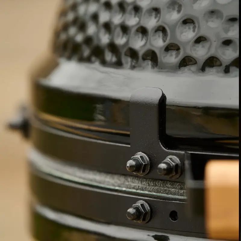 The Onyx Large je tmavý drahokam v rodině Big Green Egg. Ultratmavá glazura s jemným zeleným nádechem v přímém slunci – výsledek roku vývoje designérského týmu BGE. Stejná keramika vypálená při 1 300 °C, stejný výkon od 70 do 370+ °C, stejná doživotní záruka. Ale v designu který sedí do moderních exteriérů lépe než kdykoliv předtím.