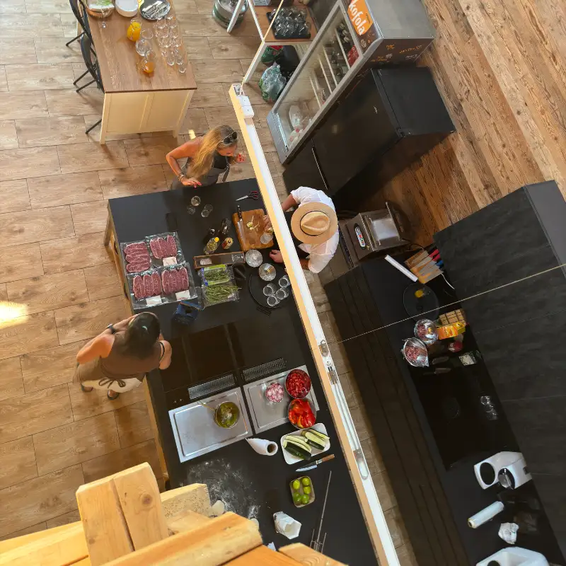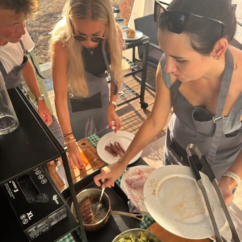 Na většině kurzů v ČR vaříte 3-4 u jednoho grilu a máte společné 1 prkýnko a 1 nůž.... TOHLE U NÁS NEPLATÍ!